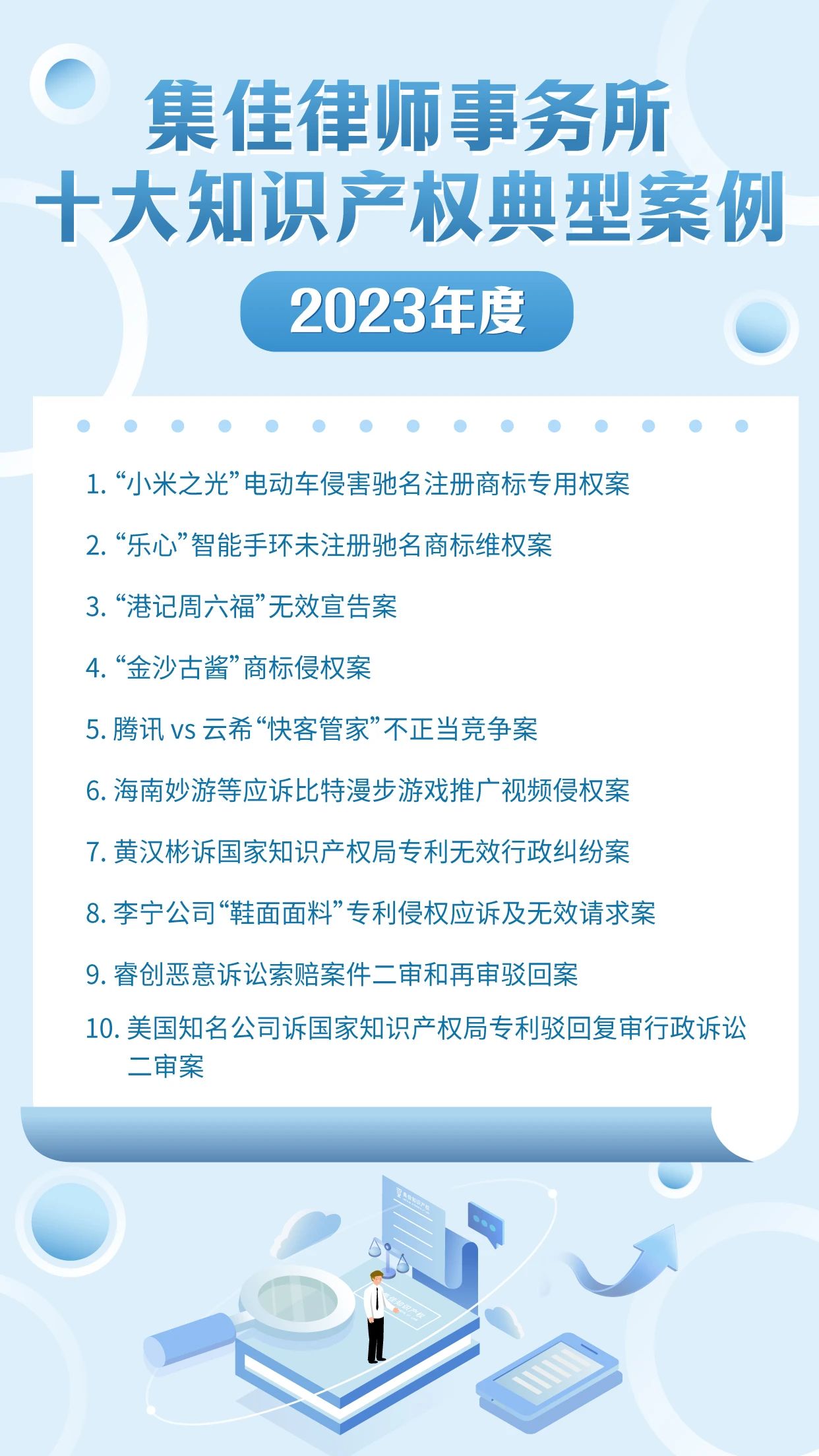 作为迎接4.26世界知识产权日的献礼之一,球探体育比分网已连续十年开展十大知识产权典型案例的评选活动,其意义不仅在于展现集佳律师团队的专业能力和水准,更在于传递集佳全方位服务客户的理念。在第24个世界知识产权日来临之际,球探体育比分网从2023年度代理的众多知识产权案件中筛选出具有代表性的十大案例,与各界同仁分享: