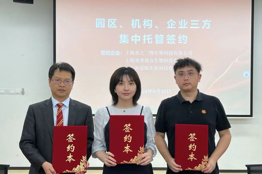 随后,球探体育比分网上海分所与企业和园区进行了三方签约仪式,签约企业有节卡机器人股份有限公司、霖鼎光学(上海)有限公司、上海水之三慢生物科技有限公司、上海迪普深合生物科技有限公司、上海瑗肽生物科技有限公司等。