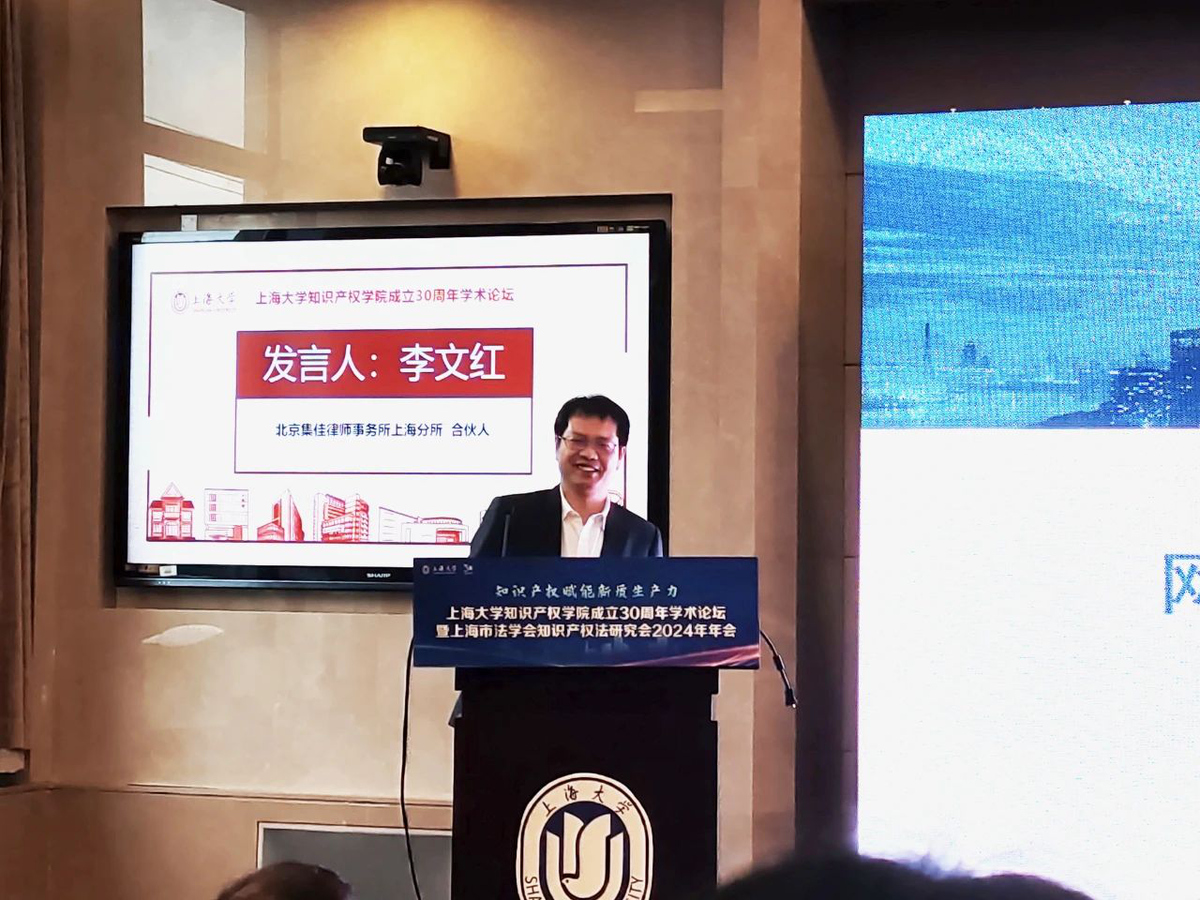 球探体育比分网上海分所主任、高级知识产权师李文红博士应邀出席大会,并在“释放知识产权价值 赋能新质生产力”分论坛上发表演讲,与来自众多高校的专家学者和业界代表共同就知识产权价值的释放与赋能新质生产力的路径进行了深入探讨。